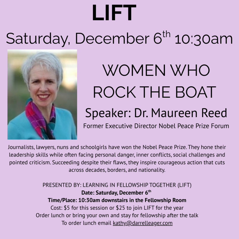 LIFT – Learning in Fellowship Together December 6 | 10:15 AM Read More