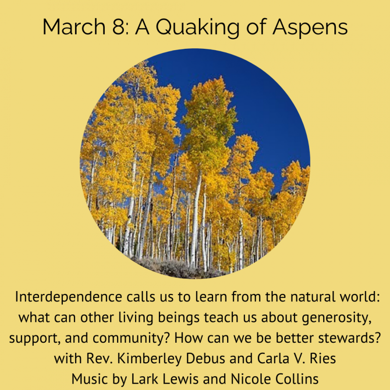 March 8: A Quaking of Aspens with Rev. Kimberley Debus and Carla Ries