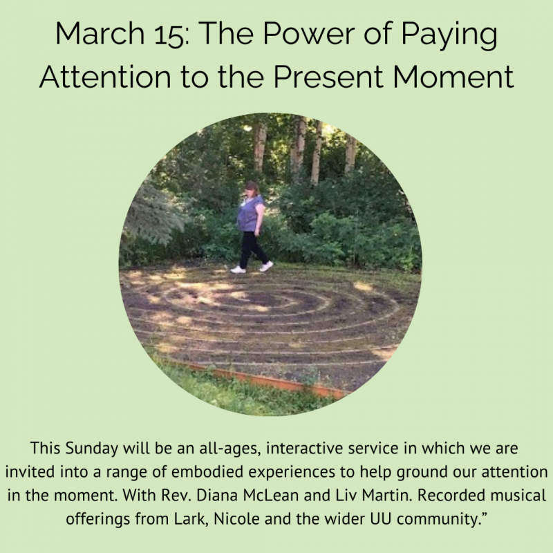 March 15: The Power of Paying Attention to the Present Moment with Rev. Diana McLean and Liv Martin
