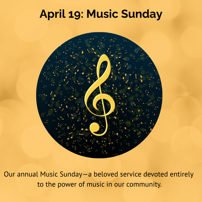 April 19: Our annual Music Sunday—a service dedicated entirely to music by the talented members of our community.