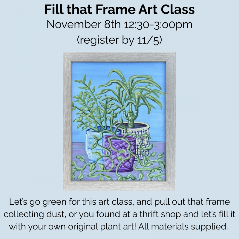 Class price: $35 *Participants encouraged to bring a repurposed, thrifted, or frame collecting dust.